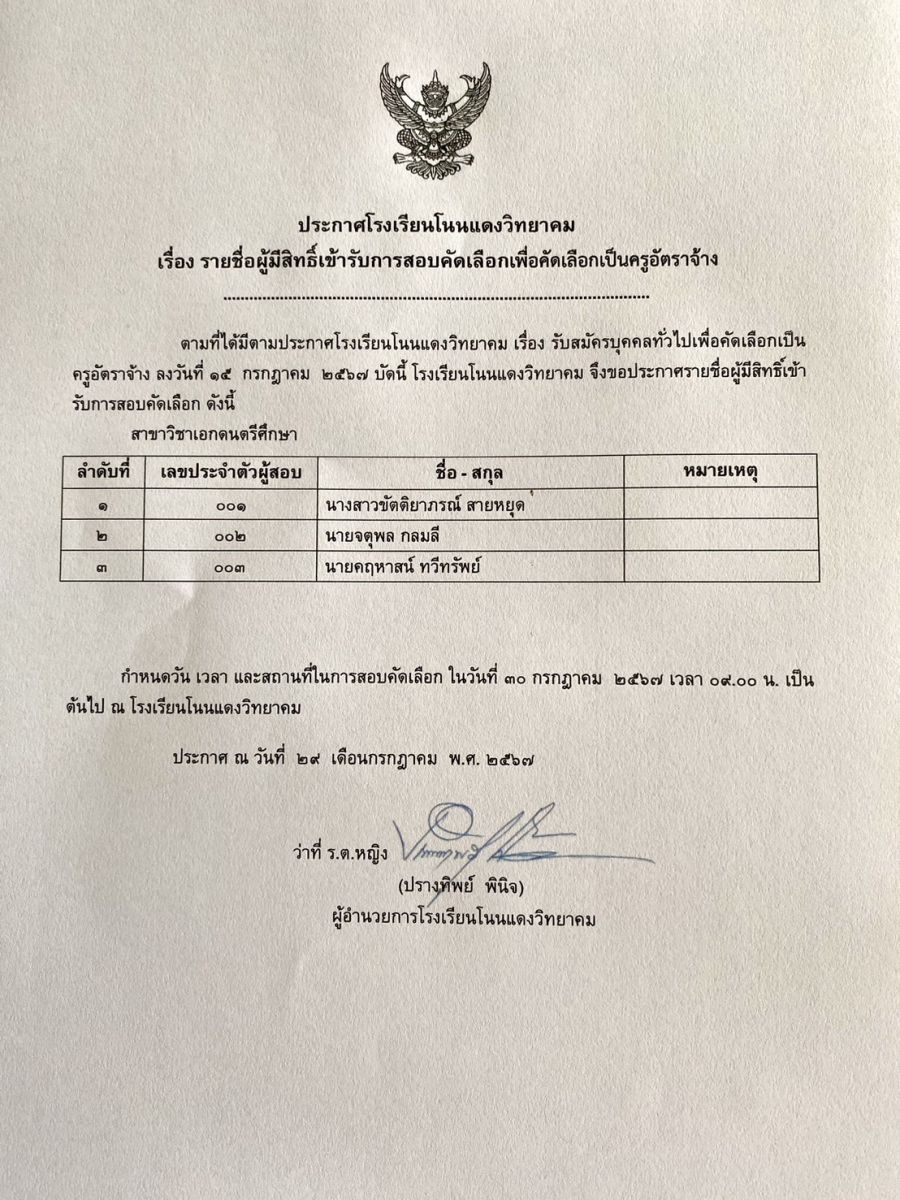ประกาศผู้มีสิทธิ์สอบ